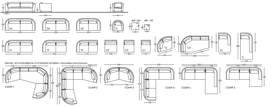 Versioni: divano 3 posti, 2 posti e mezzo e 2 posti, poltrona e versione