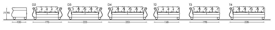 Versioni: divano 2 posti, 2 posti e mezzo e 3 posti, e
