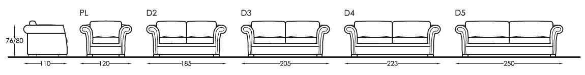 Versioni: poltrona, divano 2 posti, 2 posti e mezzo e 3 posti.